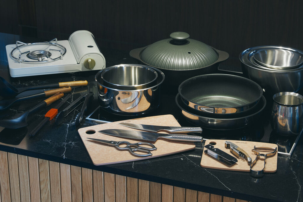 | 鍋(中サイズ、フタ付き) | 片手鍋(ステンレス) | 鍋敷き |